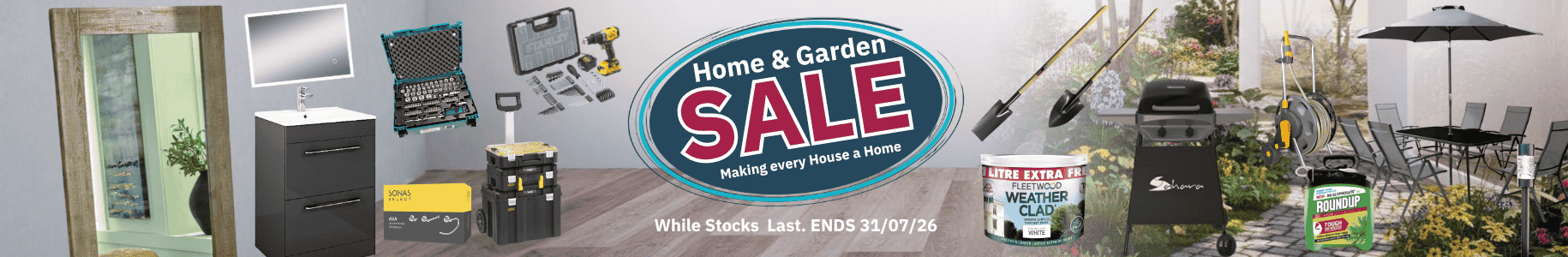 Discover an exciting selection of incredible deals on home, garden, DIY supplies and much more. Explore top brands such as Stanley, Fleetwood, Sahara, Hyundai, Sonas, Deanta, and others. There’s something for everyone, whether you’re a seasoned tradesperson or a budding DIY enthusiast!