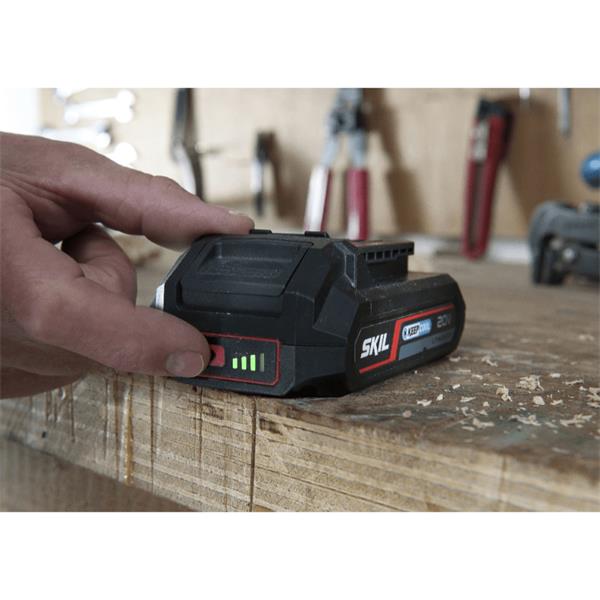 The ‘20V Max’ (18V) SKIL 3070 is a brushless cordless hammer drill with impact function. This tool is ideal for drilling into wood, metal and even masonry and for the toughest screwdriving jobs. The brushless motor is faster, stronger and lasts 10 times longer than a comparable brushed motor. The 17 torque settings ensure precise screwdriving results. Thanks to the function selector you can easily switch between screwdriving, drilling and hammer drilling. It has two gears that you can use for either fast drilling or for tough drilling and screwdriving. This tool has a 13-mm single-sleeve metal keyless chuck with lock that prevents the bits from slipping. The automatic spindle lock allows easy accessory changing. All in all, this versatile tool truly offers everything you need: reliable Lithium-Ion battery technology, variable speed for full control and the LED light ensures good visibility of your work. The patented battery-level indicator conveniently displays the charge level of the battery.