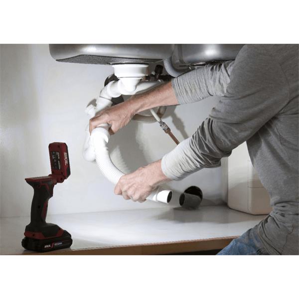The ‘20V Max’ (18V) SKIL 3155 is a powerful cordless LED spotlight that ensures light where you need it during your DIY jobs. It’s equipped with two-step brightness control for extra brightness when required. Switching between the different light settings is simple and only requires the use of one finger. This LED spotlight produces 360 lumens, which can be compared to the brightness of an incandescent light bulb that uses 24W. In contrast to an incandescent light bulb, the SKIL 3155 is energy-saving and more environmental-friendly. For extra working convenience, you can easily adjust the head of the cordless LED spotlight to aim the light in the right direction. This handy feature ensures you have both hands free for the actual DIY job. Last but not least, this tool has a strong, convenient handle with soft grip for easy carrying. The SKIL 3155 CA is supplied without a battery.