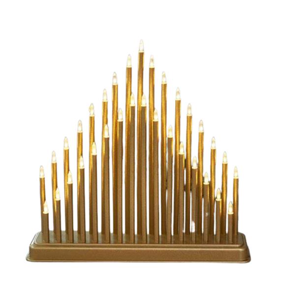 Introducing the 33 LED Candlebridge Gold, a stunning addition to your home décor. This elegant and traditionally styled LED CandleBridge is designed to be the perfect centrepiece, illuminating your space with a warm, inviting glow. Measuring 33 x 34 cm, it fits beautifully on mantels, tables, or windowsills, creating a cozy atmosphere indoors.