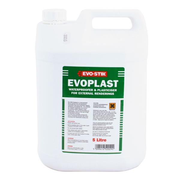 The Evo-Stik Evoplast provides a concentrated liquid waterproofing plasticiser, provideing long-term protection against dampness and driving rain by entraining air to reduce internal friction within the mix.
