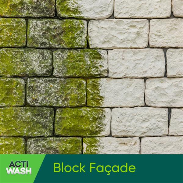 Actiwash Pro is an efficacious and nearly pH neutral biocide suitable for the removal and control of unsightly organic (red, green and dark) staining found on many exterior surfaces. It's a more concentrated version (5x) of Actiwash Domestic and is designed for professional users. The powerful anti-microbial properties exhibited by the Actiwash formula slow down recontamination, thus providing lasting results, Actiwash is bleach-free and safe for use on virtually any natural or synthetic building surface.