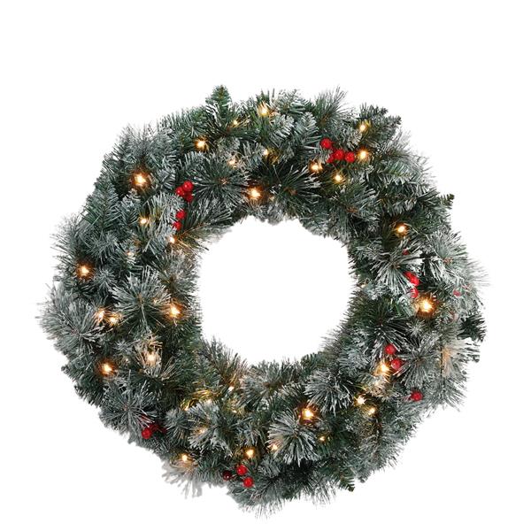 Glynns Homeware 60Cm Frosted Led Wreath With Baubles
