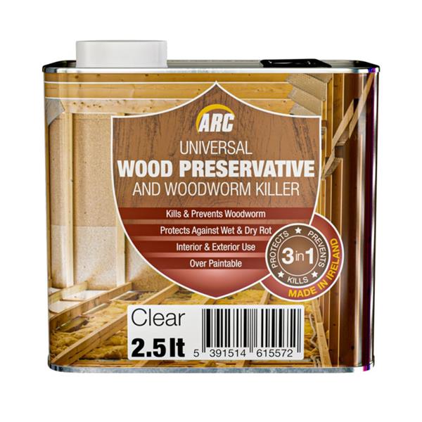 Arc Wood Preservative & Woodworm Killer is a high-performance treatment designed for both hard and soft woods. It uses microemulsion technology to penetrate deeply like a solvent, providing curative action against active wood-boring insect infestations and preventative protection against future attacks, termites, and wood-rotting fungi.