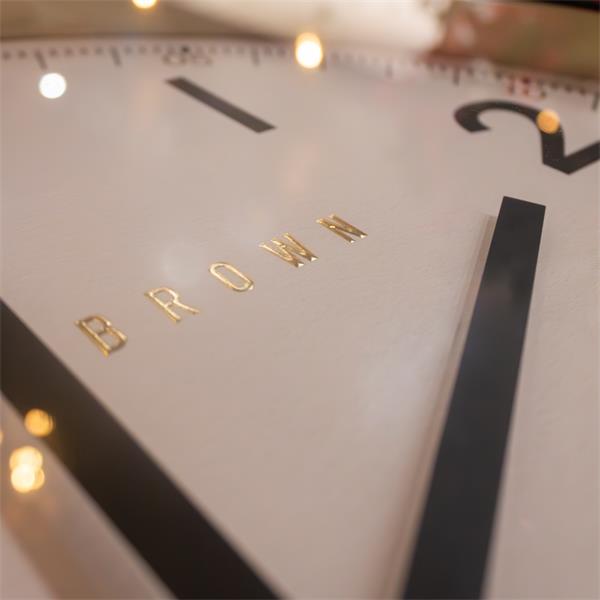 The Tara Lane Baker and Brown Station Clock in White exudes elegance and sophistication, reminiscent of vintage station clocks. Its large 50cm diameter makes it a captivating focal point for any space. Accurate and stylish, this clock adds sophistication and timeless charm to any setting.