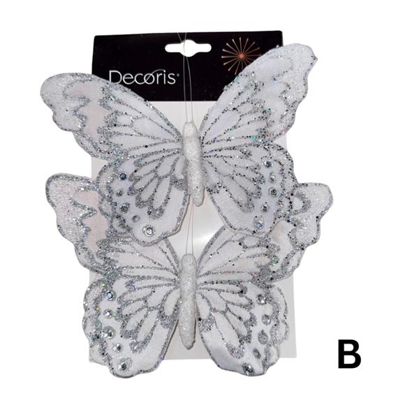 Add a touch of sparkle  with our Butterfly Clip Fabric Glitter 12Cm. Available in a convenient pack of 2, you can choose from two stunning variations: silver or gold, ensuring you have the perfect match.
