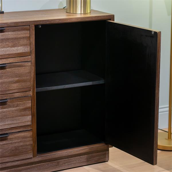 Refined and functional, the ray sideboard in dark teak showcases warm wood tones and clean, modern lines. featuring four central drawers and two side doors, it offers generous, stylish storage