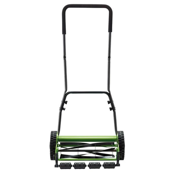 This lightweight hand push mower is easy to manoeuvre and provides a clean and precise cut for smaller lawns. The steel drum has five cylinder blades providing a generous cutting width of 380mm. To provide a choice of finish, the cutting height is easily adjusted from 18-45mm using the bracket located on the side of the mower. The rear roller creates classic stripes over the lawn and provides stability up to the lawn edges. There is a grass collection bag for keeping the lawn free of cuttings. The soft foam grip handle ensures it is comfortable to push. Fitted with robust plastic wheels.