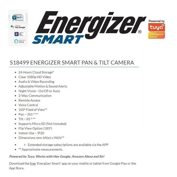 • Energizer Smart Wifi Pan & Tilt Indoor Camera | S18499