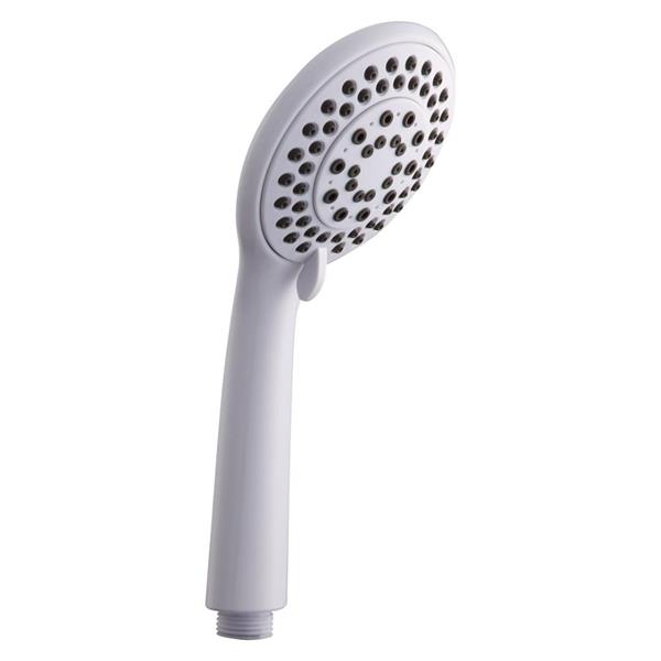 The Euroshowers Superjet Shower Head is a contemporary, slim design available in a white finish. It features five spray functions to customize the showering experience.