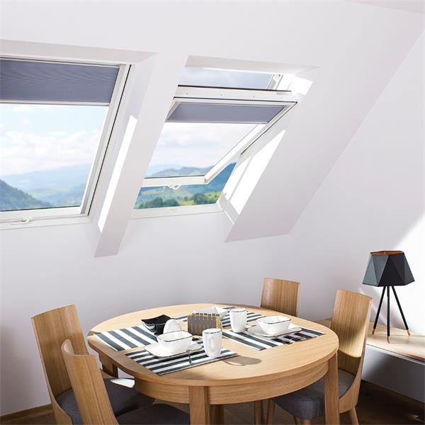 This Fakro PTP-V U3 Centre Pivot Roof Window is constructed from highly durable, multi-chamber PVC profiles reinforced with steel cores, and clad in aluminium-plastic. Because the material does not absorb moisture and is resistant to corrosion, the window is designed specifically for rooms with elevated humidity, such as bathrooms and laundry rooms. It features a popular centre pivot design, allowing the sash to be rotated 180° for easy external pane cleaning.