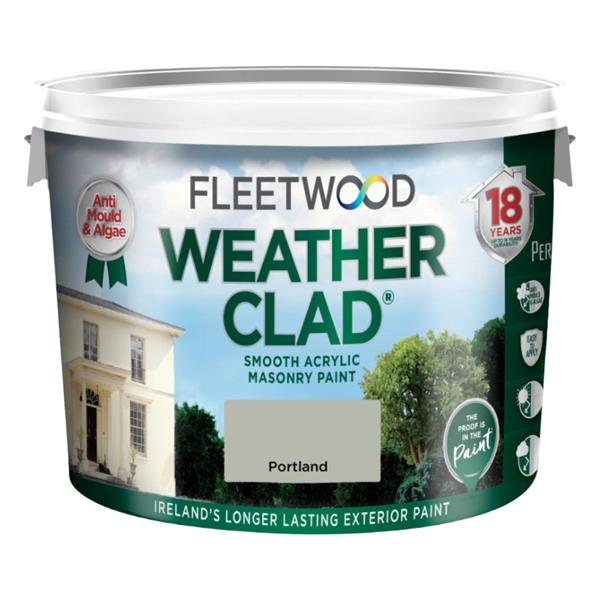 The Fleetwood Weather Clad paint provides an advanced protective coating for exterior masonry. This formulation features Permacryl technology and a Triple Lock protection system, offering a flexible barrier that is resistant to UV damage, wind, and rain.