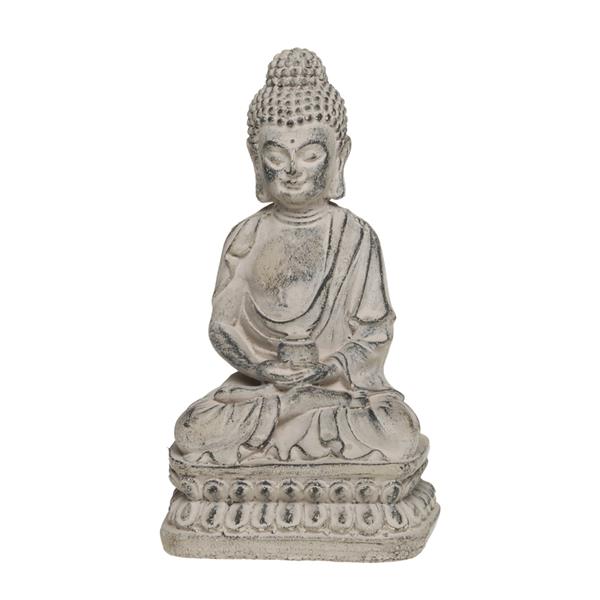 The Buddha Seated is a decorative figure crafted from cement, standing at 21cm tall. This piece, with its serene seated posture and textured finish, is perfect for adding a tranquil and spiritual ambiance to any indoor or outdoor space. Its robust material ensures durability while its detailed design makes it a captivating decorative accent.