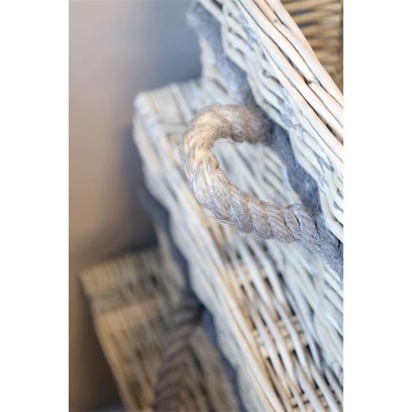 This large French Basket with Lid & Rope Handle is crafted from durable willow, offering a stylish and practical storage solution for indoor use. Measuring 26 cm in height, 42 cm in width, and 63 cm in length, it features a convenient lid and sturdy rope handles for easy transport. Perfect for tidying away blankets, toys, or laundry, this basket combines functionality with a charming rustic aesthetic.