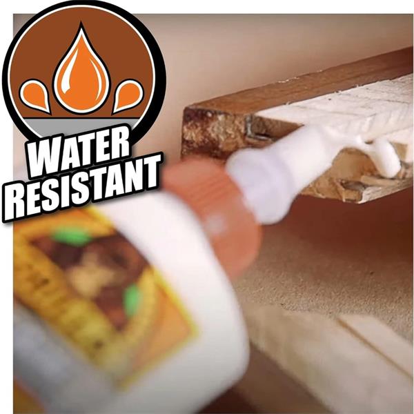 Gorilla Wood Glue is a hard-working, water-resistant adhesive designed for use on a variety of wood surfaces. It combines the ease of a water-based PVA formula with powerful holding strength, making it suitable for both indoor and outdoor projects. This glue dries to a natural colour, ensuring a clean-looking bond line for professional-looking repairs and builds.