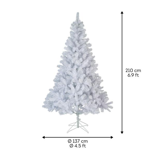 Transform your holiday season with the luxurious Imperial Pine White Xmas Tree 7Ft. Standing at an impressive D.137cm H.210cm, this stunning Christmas tree brings a touch of elegance to your festive decor.