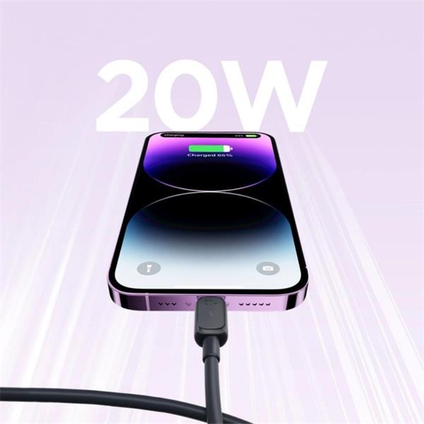 This Joyroom cable is a Type C to Lightning connector, part of the Multi-Colour Series A14, designed for data transfer and charging. It is compatible with all Apple devices and supports data transmission speeds up to 480Mbps. The cable measures 1.2m in length, offering flexibility and reach.
