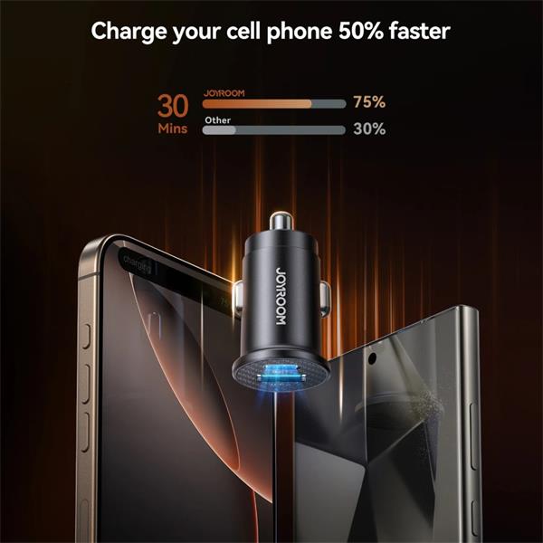This JOYROOM Mini QC+PD Car Charger is a compact charging solution for vehicles, featuring dual USB ports (Type-A and Type-C) with a total maximum output of 15W. It supports both Quick Charge (QC) and Power Delivery (PD) fast-charging technologies.