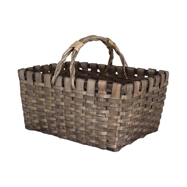 Braided wooden basket in grey with handles. This article is handmade which means irregularities and differences may occur.