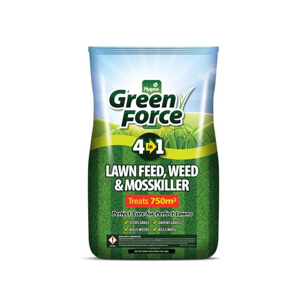 Transform your garden into a lush green oasis with Green Force Lawn Feed, Weed and Mosskiller 15Kg.