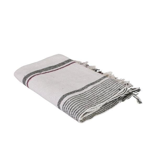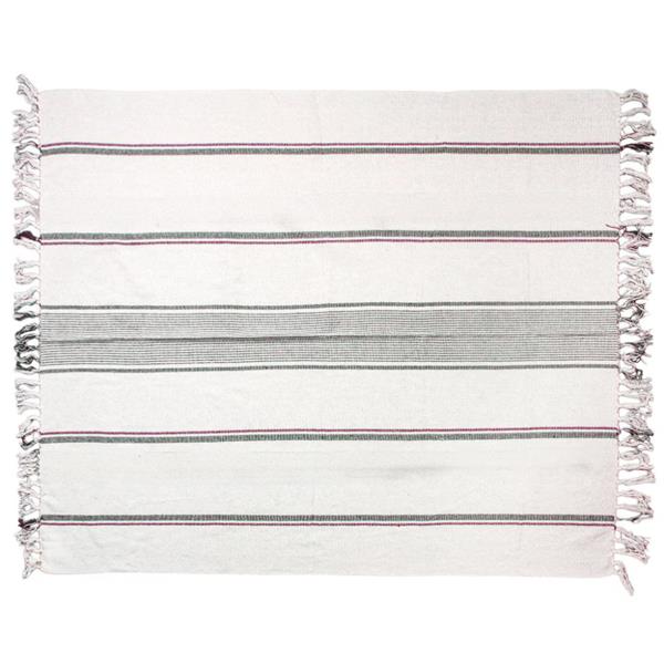 Throw in soft cotton with a woven striped pattern in off white and green with fringes. Perfect for the balcony, patio, or a picnic.