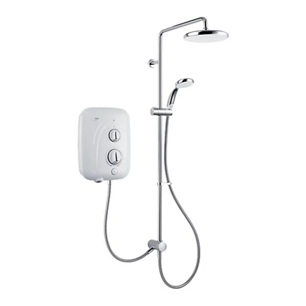 It also features a simple on/off push button and separate flow and temperature controls. The shower is easy to fit and provides a like-for-like replacement for older Elite models, using the same footprint and screw holes as the Elite QT and ST.