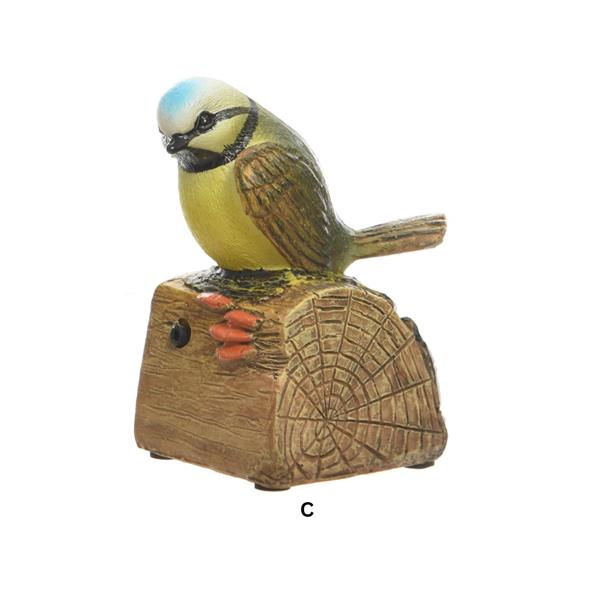 The Polyresin Sensor Bird is an elegantly designed, lifelike garden ornament that activates chirping bird noises with motion, offering an enchanting touch to your outdoor space.