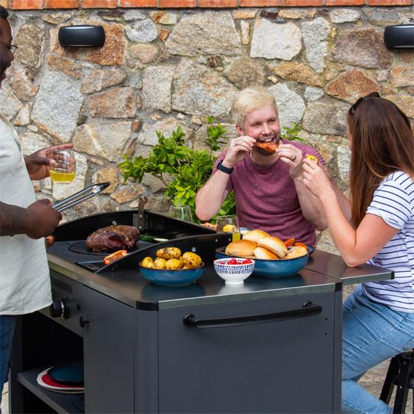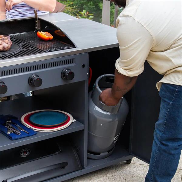 Designed with user convenience in mind, the Sahara Arke features internal gas cylinder storage, keeping your outdoor space tidy while ensuring that everything you need is at your fingertips. Additionally, the large stainless steel counter space allows ample room for food prep and serving, making it ideal for family gatherings and social events.