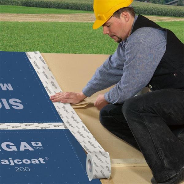 The diffusible, single-sided and strongly adhesive tape is generally suitable for bonding abutments and joints where under-roof and facade plates are to be sealed.