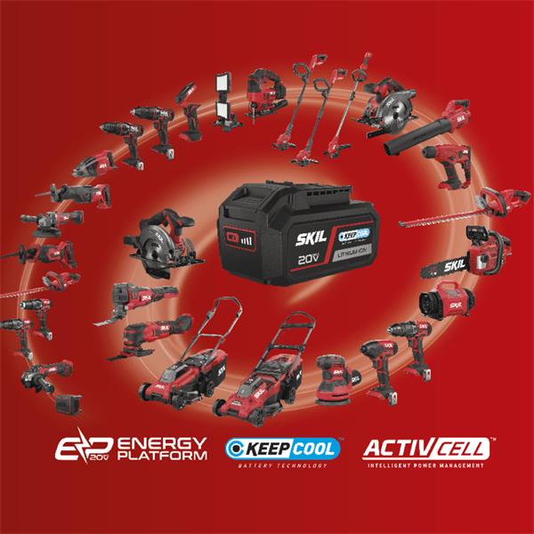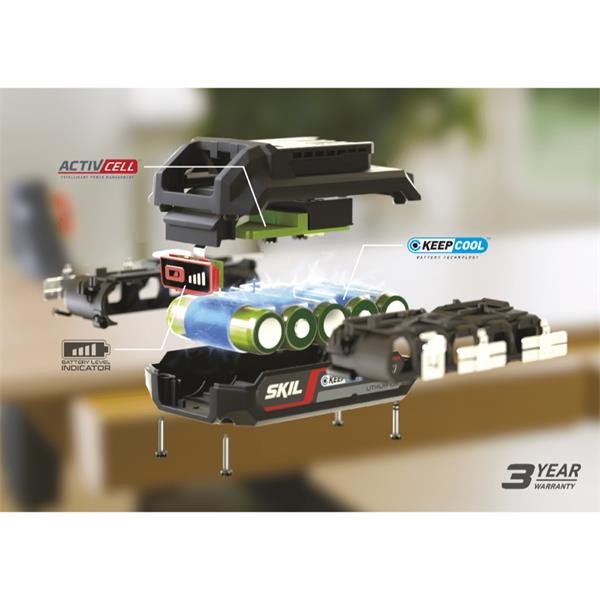 This very powerful '20V Max' (18V) 4,0Ah battery with LED battery level indicator offers superior Lithium-Ion technology, which means no memory effect, no self-discharge and always ready for use. The ‘PWRCORE 20™’ system consists of industry-leading advanced battery and charger technology, plus innovative features you won’t find anywhere else, such as our patented ‘KEEPCOOL™’ battery cooling technology which increases the runtime by up to 25% and doubles the battery lifetime. Whereas the patented ‘ACTIVCELL™’ technology safeguards a maximum performance and optimal battery protection. The ‘PWRCORE 20™’ batteries and chargers are 100% compatible and interchangeable with all SKIL ‘PWRCORE 20™’ power tools and garden tools for ultimate flexibility.