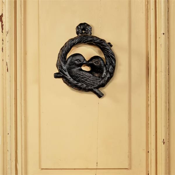 Traditional door knocker made of black cast iron with beautiful birds. Impress your guests in the entrance with this cute door knocker.