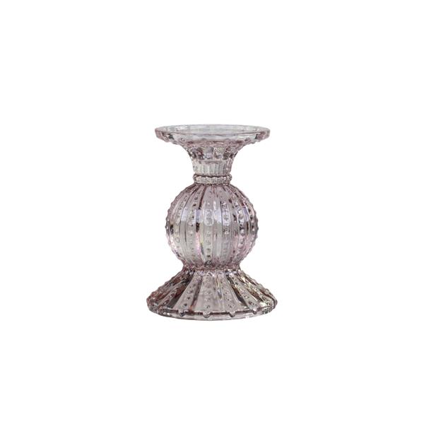 Chic Antique Taupe Glass Candlestick With Pearl Edge H14cm
