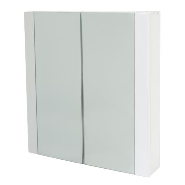 The Tema Milan Slimline Double Door Cabinet features a contemporary design with full mirrored doors and concealed handles for a sleek look. This modern storage unit is finished in a hygienic, easy-clean white gloss and includes gentle close hinges and toughened glass shelves. Designed for convenience, it comes pre-assembled and ready to hang, providing ample space for all your bathroom essentials.