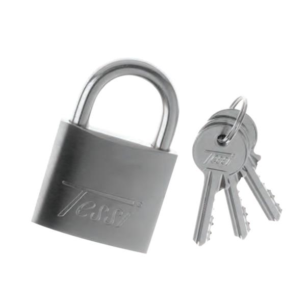 This Tessi Marine Padlock is a 40mm lock is specifically designed for environments requiring high corrosion resistance. The stainless steel body, shackle, springs, and pins offer the best overall corrosion resistance suitable for marine applications. Security is maintained through a solid brass cylinder, 5 pin tumblers, and a double locking mechanism. The shackle is hardened for added security, and the lock comes with nickel plated brass keys.