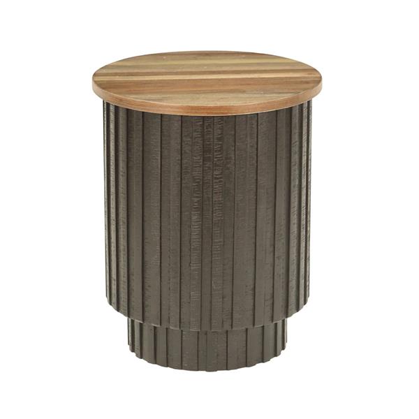 The Tara Lane Tripoli Side Table features a distinctive design that combines natural beauty with textural contrast. It boasts a top made from recycled teak wood, showcasing its rich, natural grain. The sides are crafted with a ridged texture, creating an intriguing visual and tactile contrast. Measuring 40 x 40 x 52 cm, this side table is a versatile piece perfect for adding character to your living room, bedroom, or hallway, serving as both a functional surface and a unique decorative accent.