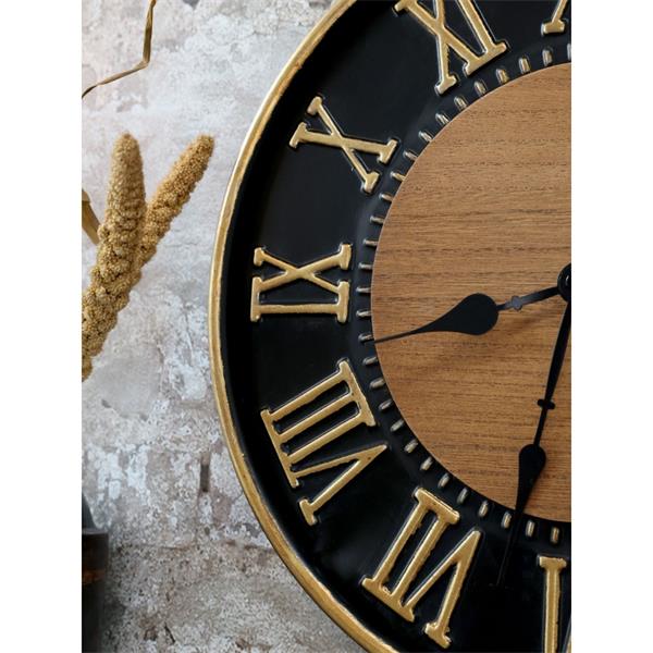 This Wall Clock features a classic design with a vintage look and bold Roman numerals, complemented by clear hour and minute markings. Measuring 35 cm in diameter, this black wall clock is battery-operated (requires AA batteries, not included). It's a perfect decorative piece to add a touch of timeless elegance and practicality to any room in your home.